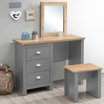 Leigh Grey 3 Drawer Dressing Table Set | Grey | Self Assembly