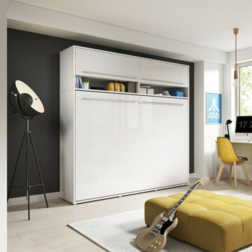 Vertical Wall Bed Concept 140cm with Storage Cabinets | White Gloss